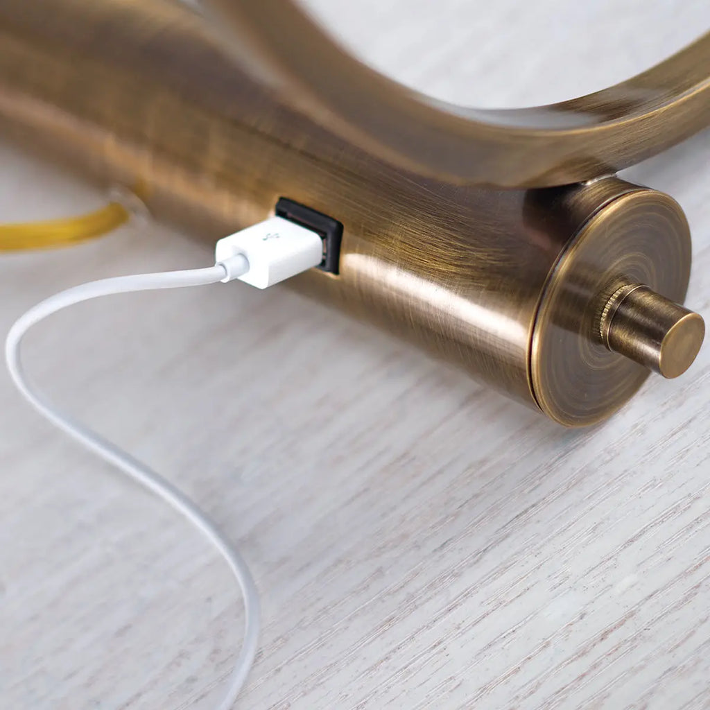 - The USB-port in the base of the light is a convenient way to charge your smart phone, tablet or other mobile device on your office desk or night stand without running another cord. (Input: 100-240 Vac, 50/60 Hz, 0.5A, Output: 5 Vdc, 2A)