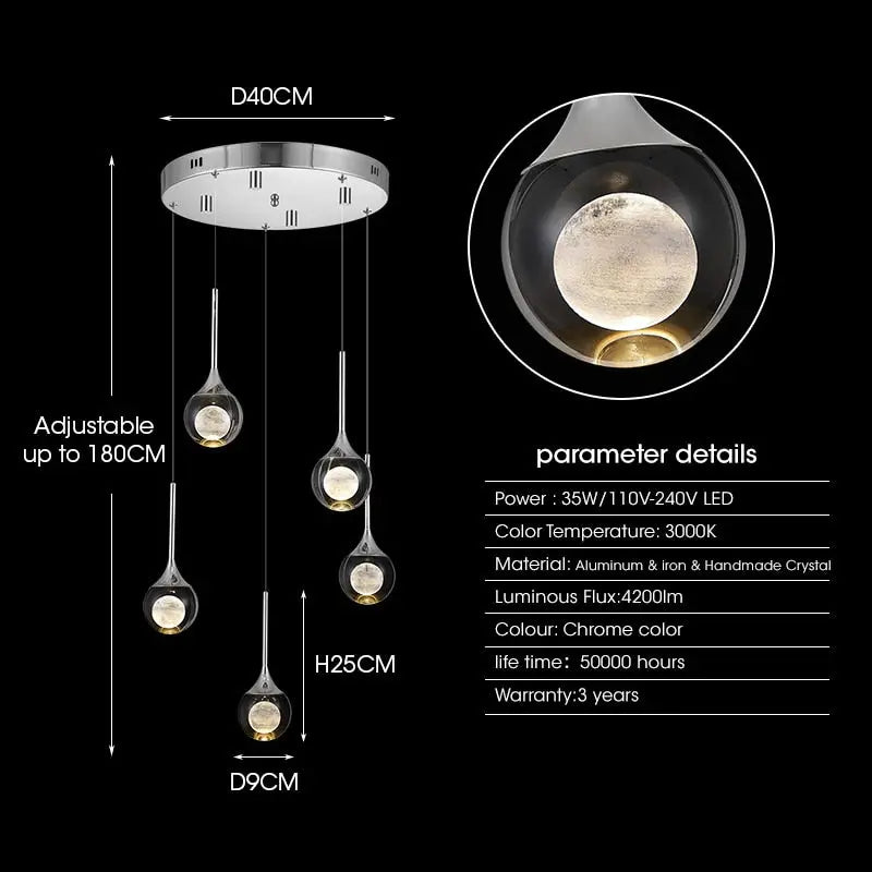 Introducing our stunning Moon Shape Pendant Light, the epitome of luxury and elegance. Perfectly designed to add a touch of sophistication to any living space, this pendant light is crafted using premium quality materials and features exquisite crystal accents that reflect the light beautifully.