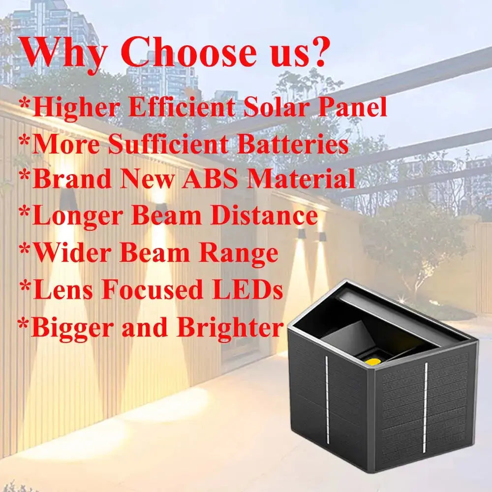 Enhance your outdoor space with our Outdoor Waterproof Garden Decor Lights, designed to bring elegance and functionality to your garden, patio, fence, porch, or balcony. These garden decor lights provide a stunning up-and-down lighting effect, creating a warm and inviting ambiance for any outdoor setting.