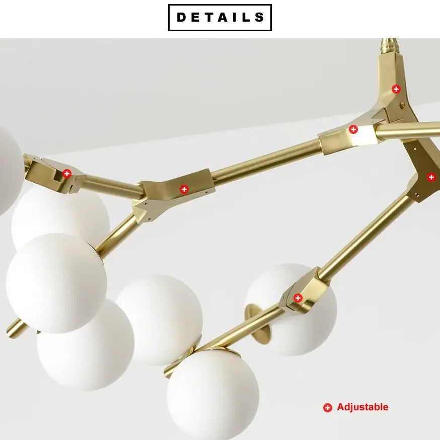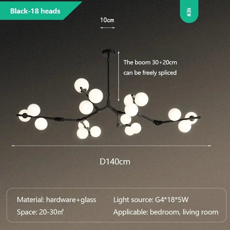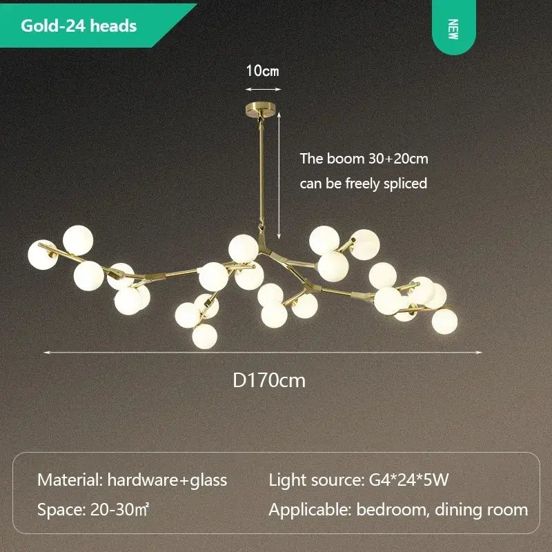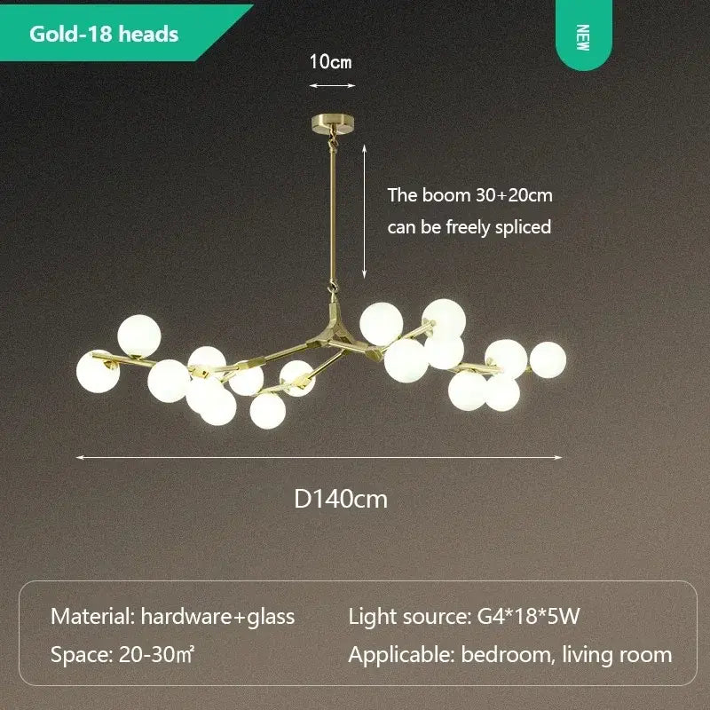 Crafted with a series of delicate glass spheres, this chandelier diffuses light softly and evenly, creating a warm and inviting atmosphere. Its post-modern aesthetic seamlessly integrates into various interior styles, from minimalist to eclectic, making it a versatile addition to your home décor.